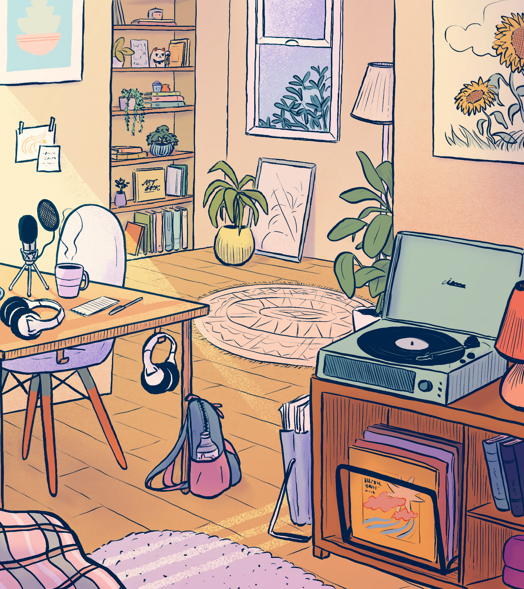 Cover illustration for The Sunflower & The Wallflower podcast 🎙🎧🌻